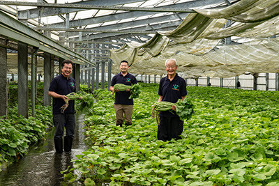 藤屋わさび農園のWebサイトの写真は、写真家の秋田大輔氏に撮り下ろしていただきました。わさび田をはじめて訪れた秋田氏は、日本アルプスから流れる美しい水にとても感激されていました。この水があってこそ、日本一のわさびが育ちます。この良い機会に、親子3代が集まりました。「わさび作りの匠」勢揃いです。てしおにかけた安曇野のわさびは今や世界から注目されています。