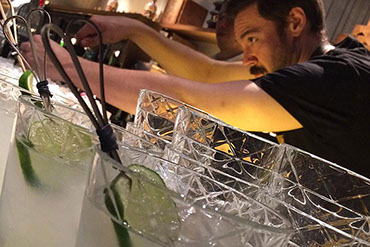 わさびはカクテル作りの食材としても注目されています。写真はロンドンのレストランにて。これはジン、レモン、ライム、シロップ、おろしわさびのカクテルです。おろしわさびは、すったそのものを入れます。そうすることで、だんだんジンと融合し、わさびらしい清涼感も一緒に味わえます。その他、日本酒や焼酎でつくるカクテルも人気です。