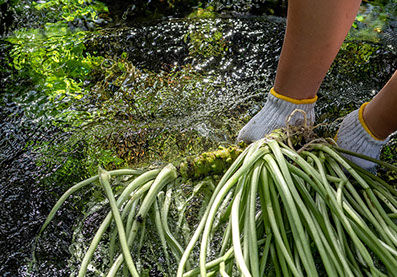 長野県安曇野市で収穫されたわさびを新鮮な状態で配送しております。
